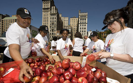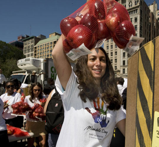 7月14日,志愿者在纽约为需要帮助的人们分装苹果,以庆祝“曼德拉日”。7月18日将会迎来南非前总统纳尔逊·曼德拉91岁生日。各地志愿者纷纷行动起来,以行善的方式为曼德拉庆生。
