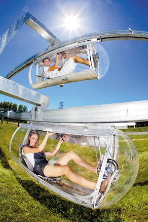 这样环保又兼具运动功能的运输系统,可以运用在户外较大空间的风景区、国家公园、探险营等地方。目前世界上唯一一处Shweeb设在新西兰旅游城市罗托鲁瓦的一家探险公园内,游客们只要支付45美元,就可以体验乘坐这种新奇的轨道交通工具竞速的感觉了。