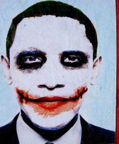 在美国总统奥巴马庆祝48岁生日的同时,一些批评人士制作了一幅奥巴马的海报,将奥巴马画成了《蝙蝠侠6:暗夜骑士》中长相丑陋吓人的“小丑”,面目狰狞。海报引起奥巴马支持者的不满,反对者称这样公开嘲讽奥巴马的行为只是个“开始”。