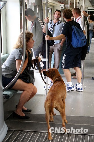 8月14日,德国柏林市的各线地铁乘客众多,不少居民携带着爱犬乘车出行。宠物狗在德国倍受优待,许多公众场合都可以任其自由进出。中新社发 任晨鸣 摄