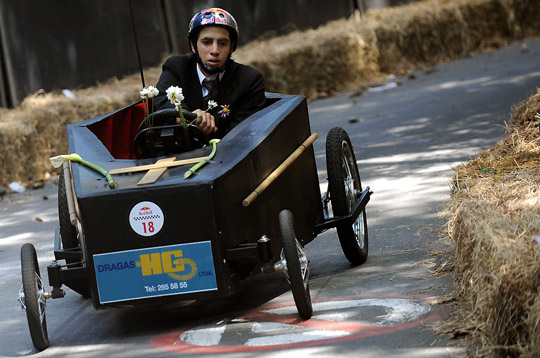 9月6日,哥伦比亚麦德林市举行了一场别开生面的小汽车竞赛,参赛选手带着各自设计的奇形怪状的“赛车”前来参加比赛。