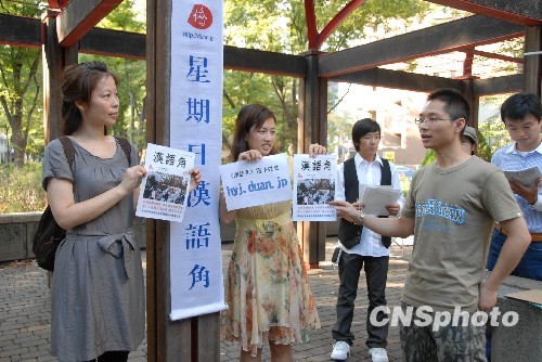 9月13日,东京星期日汉语角举行第106次交流会。日本侨报社在会上宣布,为纪念新中国诞生60周年,第一份专门介绍汉语角交流活动的中日双语电子杂志《汉语角》,9月13日在东京创刊。超过150页的《汉语角》创刊号收录了2007年以来的主要报道,内容丰富,图文并茂。中新社发 段跃中 摄