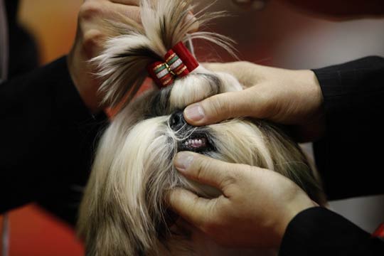 当地时间9月17日,在墨西哥首都墨西哥城举行了2009国际小狗竞选大赛。众多参赛的小狗纷纷“梳妆打扮”准备参加国际小狗竞选。