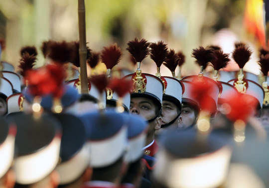 10月12日,西班牙国庆节当天在马德里举行了隆重的阅兵庆典仪式,西班牙陆海空和警察部队的3800多名官兵、200多辆战车及50多架战机参阅。