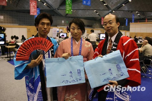 十一月十三日,本届新加坡APEC工商领袖峰会刚刚启幕,万众瞩目的APEC领导人峰会高潮尚未来临,但下届举办地的日本横滨相关人士已急不及待在会场内穿梭推介。中新社发 郑祚声 摄