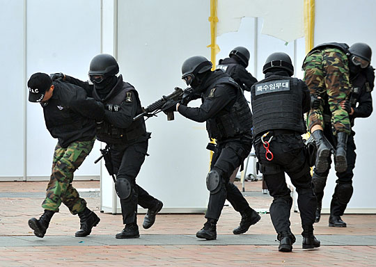 11月16日,韩国在距首尔以北30公里处举行了由特种兵参与的反恐演习。