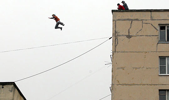 11月18日,在俄罗斯圣彼得堡,一名“跑酷”爱好者从一座8层的建筑物楼顶跳向一座5层的建筑物楼顶。“跑酷”运动也称为城市疾走,诞生于20世纪80年代的法国,它通过参与者的跳跃、攀爬等方式,不依赖任何器械完成对环境障碍的穿越。