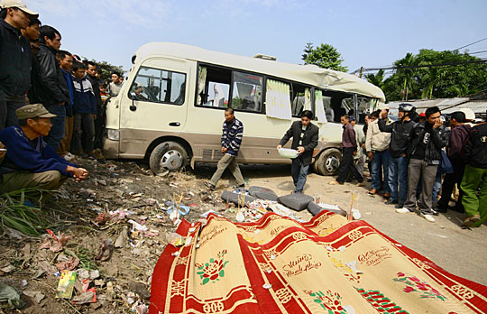 越南首都河内的郊区在11月22日发生一起火车与公共汽车相撞事故,造成至少7人死亡,14人受伤。