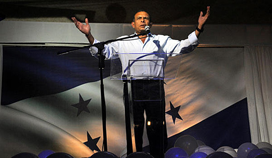 11月30日,洪都拉斯主要反对党国民党总统候选人波尔菲里奥·洛沃大选获胜后在首都特古西加尔巴向支持者发表讲话。根据洪都拉斯最高选举委员会29日公布的官方数据,洛沃以55.8%的支持率在当天举行的总统选举中获胜。