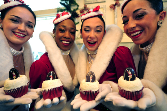 12月8日,美国纽约洛克茨无线电城“火箭女郎”舞蹈团的队员们近日与蛋糕店联合推出演出套票,买蛋糕的观众可以以更优惠的价格购得演出票。