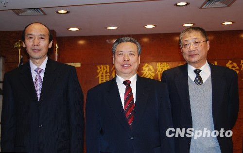 当地时间12月22日晚,中国驻纽约总领事彭克玉(居中)举行招待会,欢送即将荣调回国的文化参赞翟德玉(左),欢迎新到任的文化参赞王燕生(右)。彭克玉称赞翟德玉在纽约任职四年的工作表现,同时寄语驻外经验丰富的王燕生参赞将领区内的中美文化交流做得更好。中新社发 魏晞 摄