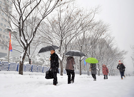 1月4日,韩国首都首尔等地区遭遇大雪袭击。大批航班取消,交通严重受阻。