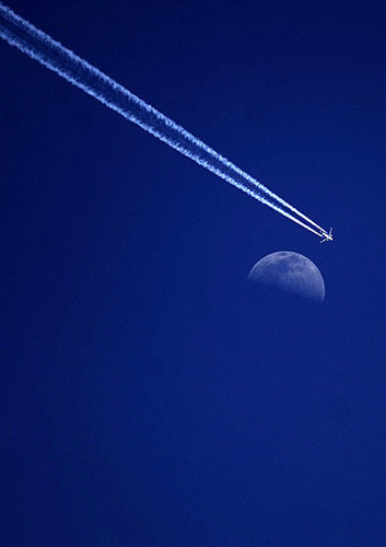 1月23日,意大利安泰塞尔瓦,一架飞机从空中飞过,在月亮的衬托下宛如一幅“登月”科幻图。
