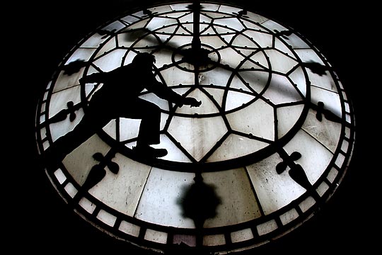 1月28日,英国曼彻斯特,钟表专家开始对曼彻斯特市政厅的大钟进行维护。
