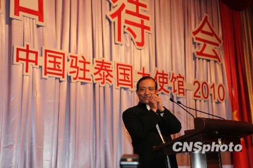 2月9日晚的曼谷香格里拉大酒店,灯火辉煌,冠盖云集,来自泰华社会各社团侨领、中资机构、留学生、中国驻泰使馆全体人员以及部分泰国政要1000多人,共同出席了由中国驻泰国大使馆举办的2010年春节招待会。中国驻泰国大使馆大使管木在招待会上致辞说,去年中泰关系保持了平稳发展势头,两国战略性合作关系深入推进。在一系列重大地区和国际问题上,中泰两国保持密切沟通与协调,为促进地区和世界和平与发展发挥了建设性作用。中新社发 顾时宏 摄
