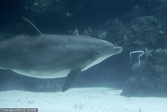 近日,美国奥兰多海洋世界的一只宽吻海豚吹出“心形”气泡,似乎要在情人节来临前夕传达浓浓爱意。