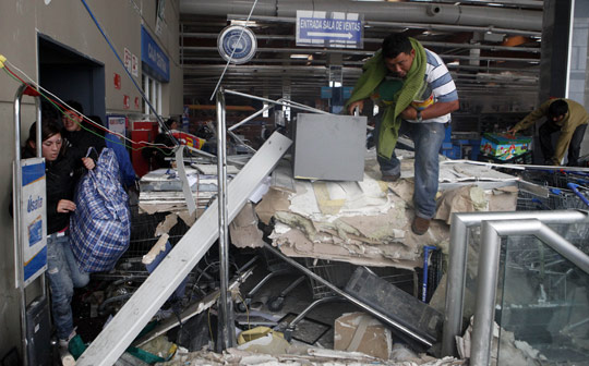 28日,智利康塞普西翁市,数百人对当地两家仓库进行洗劫。康塞普西翁市市长表示,目前情况非常复杂,“开始失控”,灾民非常脆弱。