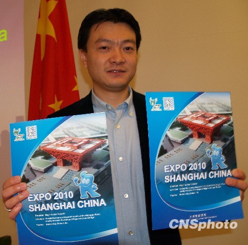 当地时间3月12日,中国国家旅游局在世界各地18个旅游办事处启动“2010中国世博旅游年全球百城世博旅游推广月”系列活动,美国洛杉矶、旧金山、圣地亚哥、休斯顿等地的世博旅游说明会先后登场。图为中国驻洛杉矶旅游办事处副主任吴大伟正在推介上海世博旅游。中新社发 卢威 摄