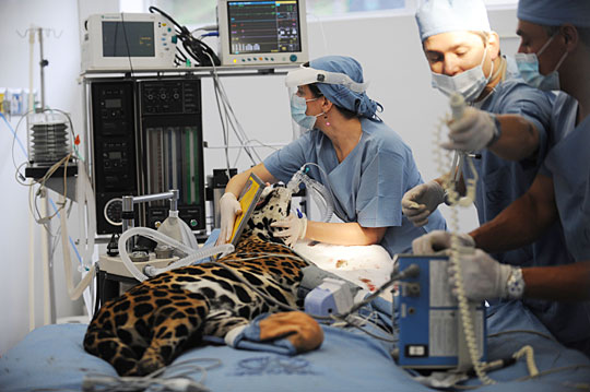 组图:哥伦比亚兽医为美洲虎实施牙齿手术