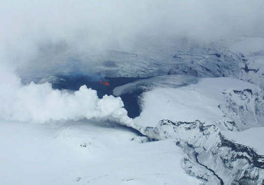 3月21日,冰岛首都雷克雅未克东南方向的埃亚菲亚德拉冰盖冰川,熔岩从火山口喷出。 这座火山于20日午夜前后就开始喷发。