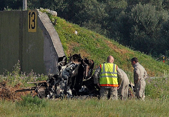 3月23日,英国“红箭”特技飞行队的两架飞机在希腊克里特岛进行训练时不慎相撞,所幸驾驶飞机的两名飞行员成功跳伞,仅受轻伤。