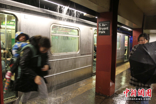 连续多日的暴雨令美国东北部许多地区成为“泽国”,纽约市也宣布进入“严密监控洪水”阶段。曼哈顿历史悠久的地铁线路也不得不接受严峻考验:在地铁第五大道站,雨水甚至沿着建筑缝隙渗入地下,令地下车站中豪雨一片。