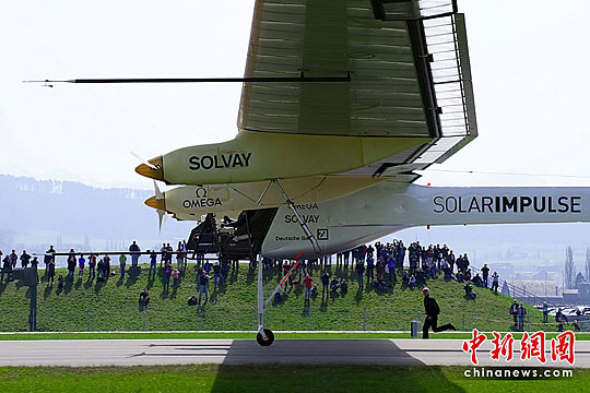 当地时间4月7日上午,全球首架依靠太阳能驱动的飞机进行首次试飞,预计此种新型飞机将在2011年实现环球航行。