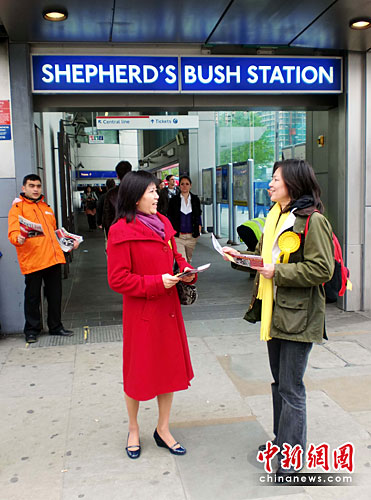 英国国会华裔议员候选人杜淑真在大选日拉票——中新网