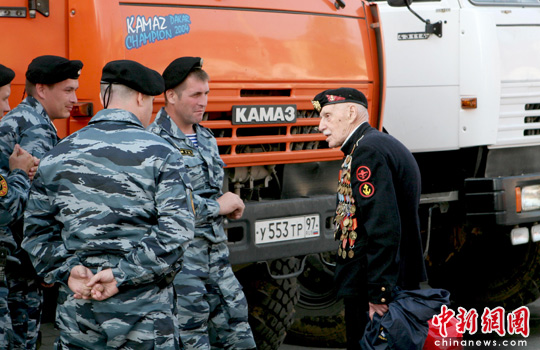 5月7日,随着俄罗斯卫国战争胜利65周年庆典日临近,莫斯科街头的节日气氛浓厚,宣传招贴随处可见。与此同时,俄各地加强了反恐防暴处置力度,确保节日庆典安全。中新社发 田冰 摄