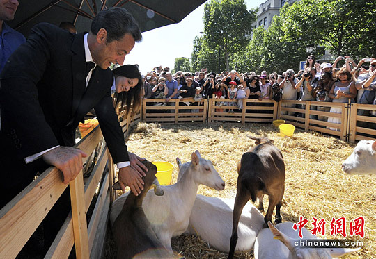 5月24日,法国巴黎,法国总统萨科齐和妻子卡拉·布吕尼参观巴黎“自然首都”展。