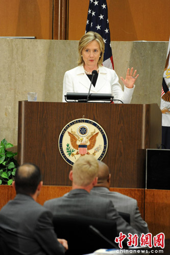 6月22日,美国国务院举办“女同性恋、男同性恋、双性恋和变性人(LGBT)自豪月”庆祝活动。美国国务卿希拉里在庆祝活动上发表讲话,誓言捍卫同性恋者权利,她还将同性恋权利视为人权,表示国务院将推出全面的人权议程,包括消除根据性取向和性别认同对人实施暴力和歧视的行为。图为希拉里当天在庆祝活动上发表演讲。中新社发 吴庆才 摄