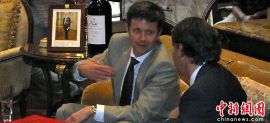 丹麦王储弗雷德里克殿下6月28日在上海造访了一处神秘私家豪宅——檀宫。这处紧邻西郊国宾馆、每栋楼价值上亿的“沪上第一豪宅”之前只有少数人得识其庐山真面。豪宅主人华丽家族董事长王伟林表示,对丹麦王储选择其家作为在上海的第一站亮相感到荣幸。据悉,弗雷德里克殿下此次来沪是为29日的世博会丹麦馆日造势。中新社发 姜煜 摄