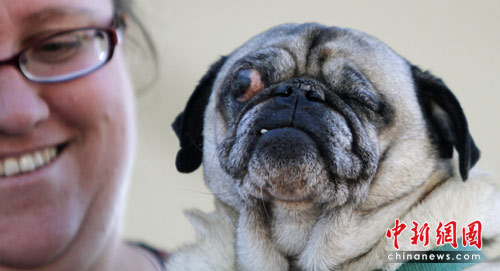 2010年最丑小狗大赛于近日在美国加利福尼亚落幕。来自各地的丑狗狗在比赛中竞相亮相。这次的冠军得主是一只名叫“艾比公主”的吉娃娃犬。它的后背和腿部都弓的很厉害,左眼因为看不见,已经难以睁开。 大赛评委认为,这只狗身体上的缺陷是因为近亲交配所至。