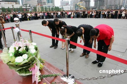 [汶川地震一周年]福建宁德市民向汶川地震遇难者默哀