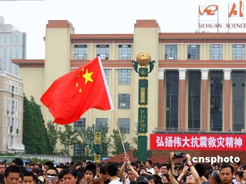 [汶川地震一周年]民众在天安门广场哀悼遇难同胞 为中国加油