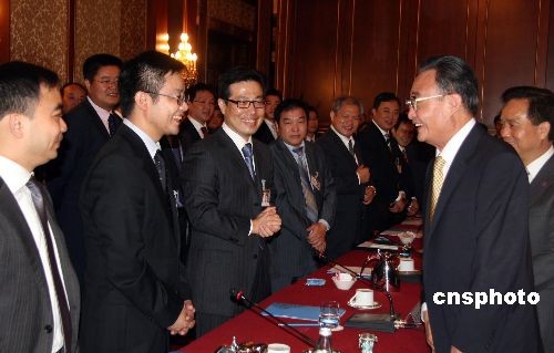 正在意大利进行正式友好访问的中国全国人大常委会委员长吴邦国,当地时间5月19日上午在米兰与在意大利的中资企业代表举行座谈。中新社发 齐彬 摄