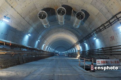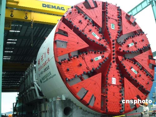 五月二十日上午,随着“扬子二号”盾构机的巨型刀盘轰鸣呼啸着冲破最后一环冷冻层,中国铁建十四局集团承建的国家“八六三”计划科技示范工程、代表当今中国水下隧道建设最高水准之一的南京长江隧道左线顺利贯通。南京长江隧道位于南京长江大桥和长江三桥之间,总长达到五千八百五十三米,设计为双向六车道,行车时速八十公里,其中左右线盾构隧道总长超过六千米,工程总投资近四十亿元人民币。它是迄今为止中国长江流域上工程技术难度最大、地质条件最复杂、技术性难题和挑战最多的世界级越江隧道工程。南京长江隧道施工采用了两台目前世界上最先进的泥水平衡盾构机掘进,刀盘直径为14.93米,相当于5层楼高,超过了目前世界上已经建成的最大直径隧道——荷兰的格林哈特隧道。中新社发 李佩山 摄