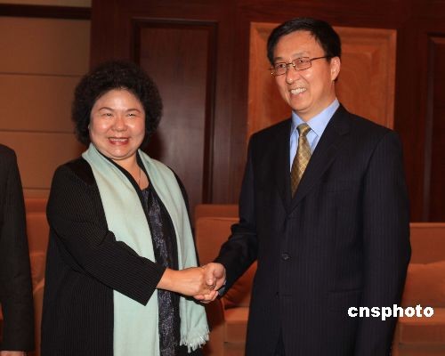 图:上海市长韩正欢迎高雄市长陈菊访沪