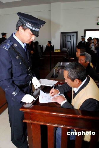 6月2日,云南省澄江县人民法院对备受关注的阳宗海污染事件进行一审宣判:被告单位锦业公司犯重大环境污染事故罪,判处罚金一千六百万元人民币。被告人李大宏犯重大环境污染事故罪有期徒刑四年,并处罚金三十万元,被告人李耀鸿、金大东犯重大环境污染事故罪各判处有期徒刑三年,各处罚金十五万元。中新社发 刘丹 摄
