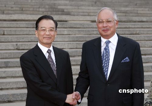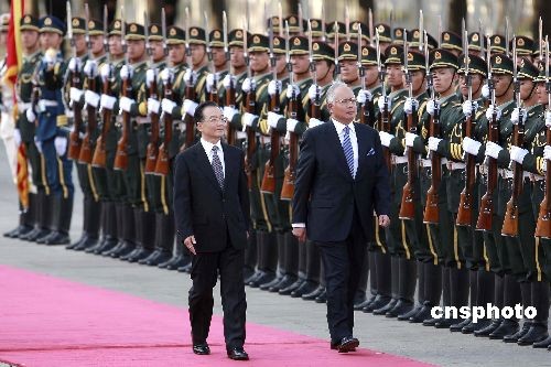 6月3日,中国国务院总理温家宝在北京人民大会堂东门外广场举行仪式,欢迎马来西亚总理纳吉布访华。中新社发 盛佳鹏 摄