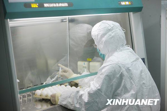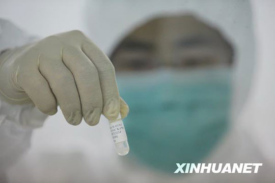 6月8日,来自美国的甲型H1N1流感疫苗生产用毒株NYMCX-179A,从美国运抵北京,并经过通关、检验检疫等手续后,送抵北京科兴生物制品有限公司。已经完成疫苗临床研究工作的北京科兴当晚启动了毒株种子批的制备工作,这标志着甲型H1N1流感疫苗的批量生产正式启动,并有望于7月底生产出首批疫苗。 邢广利 摄