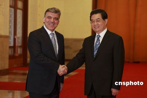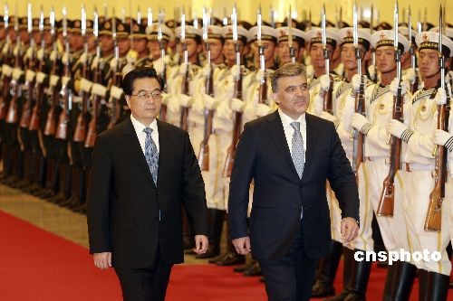 6月25日,中国国家主席胡锦涛在北京人民大会堂举行仪式,欢迎土耳其总统居尔访华。中新社发 盛佳鹏 摄