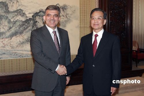6月26日,中国国务院总理温家宝在北京中南海紫光阁会见土耳其总统居尔。中新社发 盛佳鹏 摄