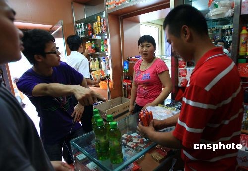 7月7日,乌鲁木齐“七·五”事件发生后,新疆乌鲁木齐市人民路一家小型超市内,市民购买生活用品。中新社发 刘新 摄