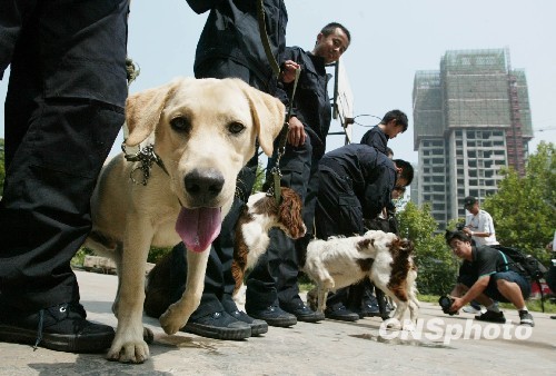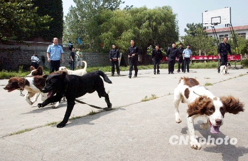 7月24日,60条警犬组成的全运安保警犬队经过3个多月的集训后在济南亮相。训练测试中,警犬的优秀率和合格率分别达到了70%、100%。据了解,60条警犬将全部投入到国庆安保和全运安保工作中。中新社发 崔前程 摄