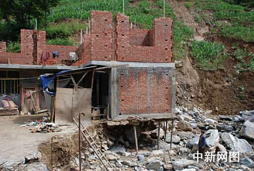 7·17特暴洪致使康县3193户10170间在5·12地震后重建的新房受损,其中倒塌房屋768户2583间。另外大部分重建户的沙子、砖头、水泥、钢筋等建材被洪水冲走,给重建工作带来了极大的困难。 中新网发 尤高宏 摄