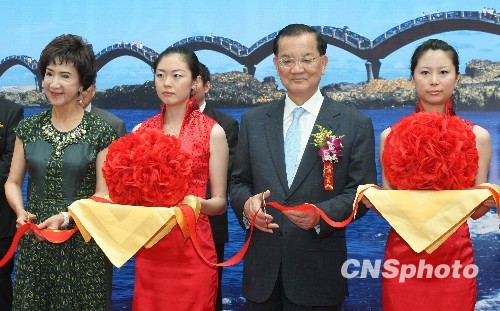 7月29日,胸怀山河岁月,恋恋两岸情浓——台湾摄影师杨永山先生摄影展在天津博物馆隆重开幕。正在天津参访的中国国民党荣誉主席连战及其夫人连方瑀等出席影展开幕式并为影展剪彩。中新社发 郭晓帆 摄