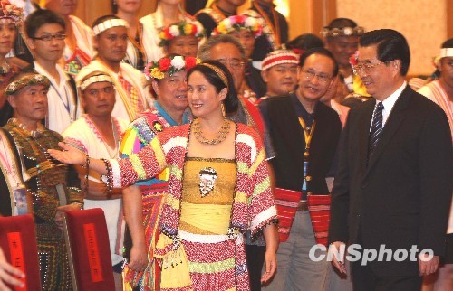 8月19日下午,国家主席胡锦涛在北京人民大会堂会见台湾少数民族代表团。中新社发 赵振清 摄