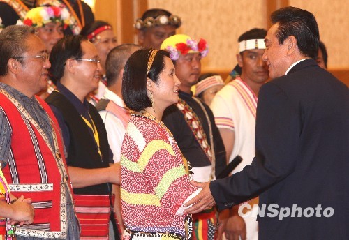 8月19日下午,海峡两岸关系协会会长陈云林在北京人民大会堂与台湾少数民族代表团交流。中新社发 赵振清 摄