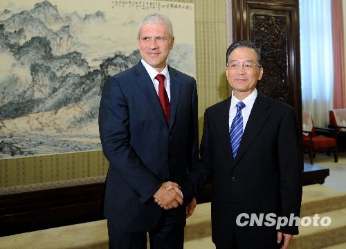 8月21日,中国国务院总理温家宝在北京中南海紫光阁会见了塞尔维亚总统塔迪奇。中新社发 廖攀 摄